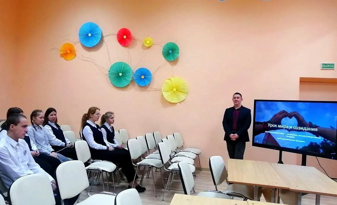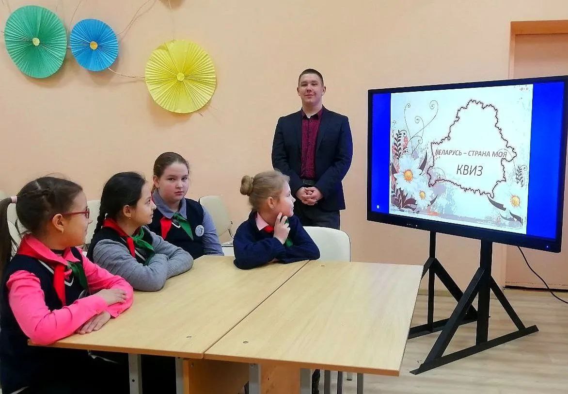 Владиславом Константиновичем для учащихся 5-7 классов был проведëн интеллектуальный квиз «Моя Беларусь», а для 8 и 9 класса - урок мира и созидания.