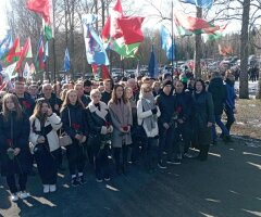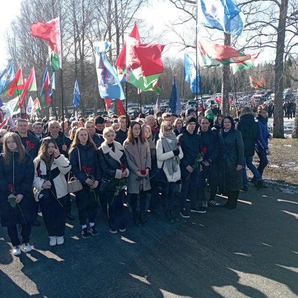 Администрация, лидеры и активисты общественных объединений, трудовые коллективы возложили цветы к Вечному огню в Мемориальном комплексе "Хатынь"