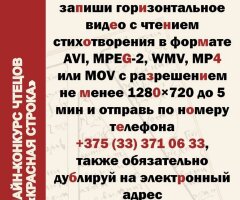 Для участия в конкурсе необходимо записать свое выступление на видеокамеру и отправить по номеру телефона +375 (33) 371 06 33, также обязательно дублировать на электронный адрес prodvizheniemolodezhyvitebsk@mail.ru